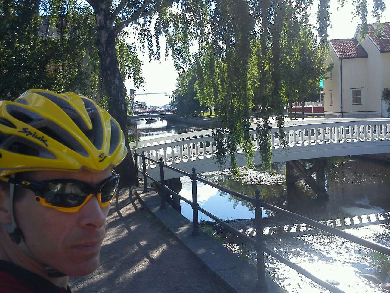 Vi starta hemma hos mig och körde över Nordrånaskogen in i Norrtälje, vidare över Porschhanken och roslagsleden till Roslagsbro. Sen blev det asfalt på Bottnavägen till Nor. Där körde vi grusväg nästan ända upp till Bagghusbron. Vidare till LVSS och bilden på Micke är längst ut på LVSS. Sen via Senneby till Älmsta. Vattenpåfyllning på kanalcafet (men EJ fika :./ ). Visade topp restaurangen Zorbas. En Grekisk restaurang ovanför kanalen som gör suverän grekisk mat samt supergoda pizzor. Kan jag verkligen rekommendera för alla att besöka. Det är det värt. Mycket mat får man oxå.